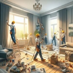 Es ist hilfreich, wenn Sie Möbel und andere Gegenstände aus den betroffenen Bereichen entfernen oder abdecken. Wir kümmern uns um das Abkleben von Kanten und das Abdecken von Böden, um sicherzustellen, dass alles sauber bleibt.